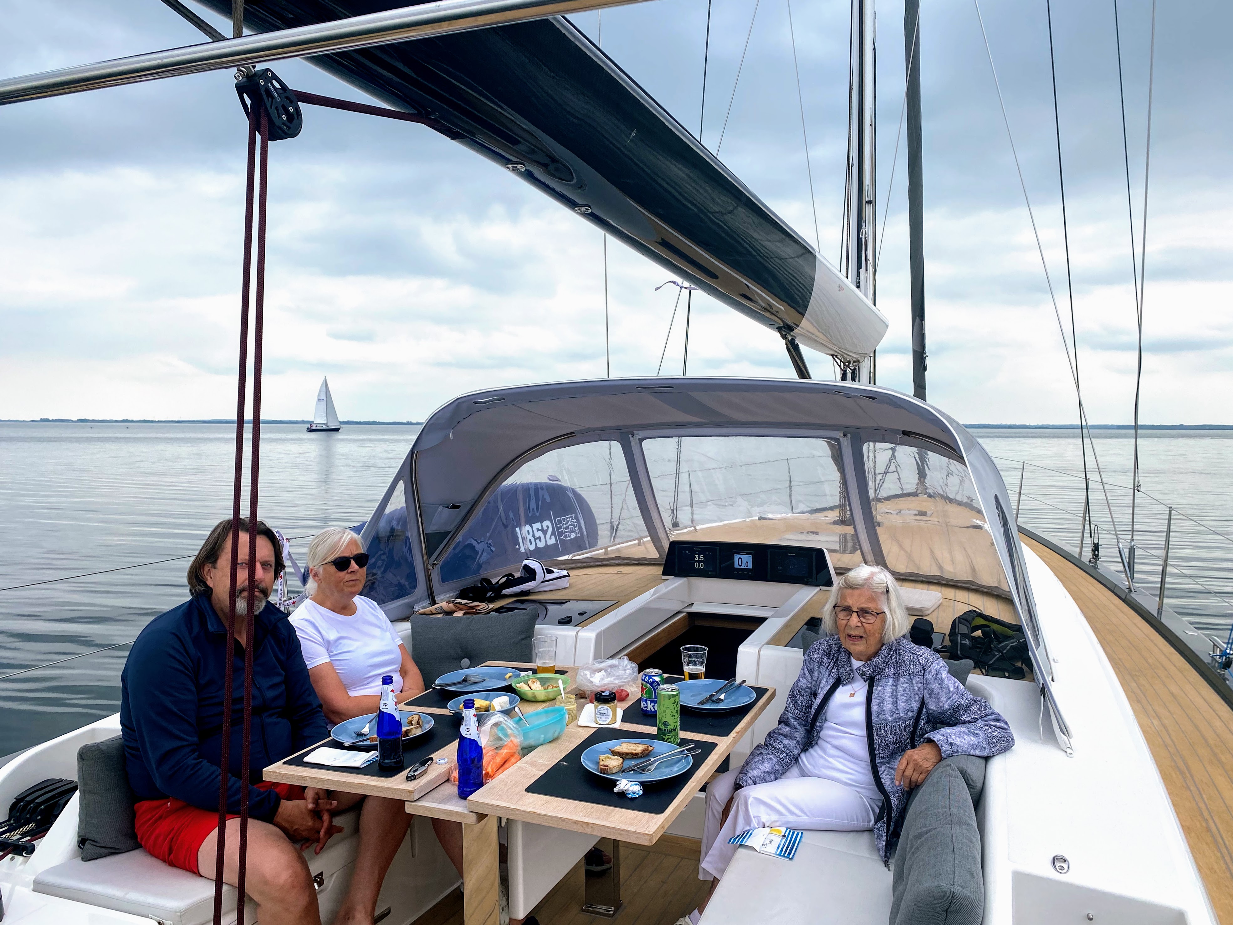 Towards evening, we returned to Juelsminde, just in time to watch the second half of the thrilling game — on my dad’s phone in the cockpit in the marina — in which Denmark beat Wales 4-0 to enter the quarterfinals of the Euro 2020.