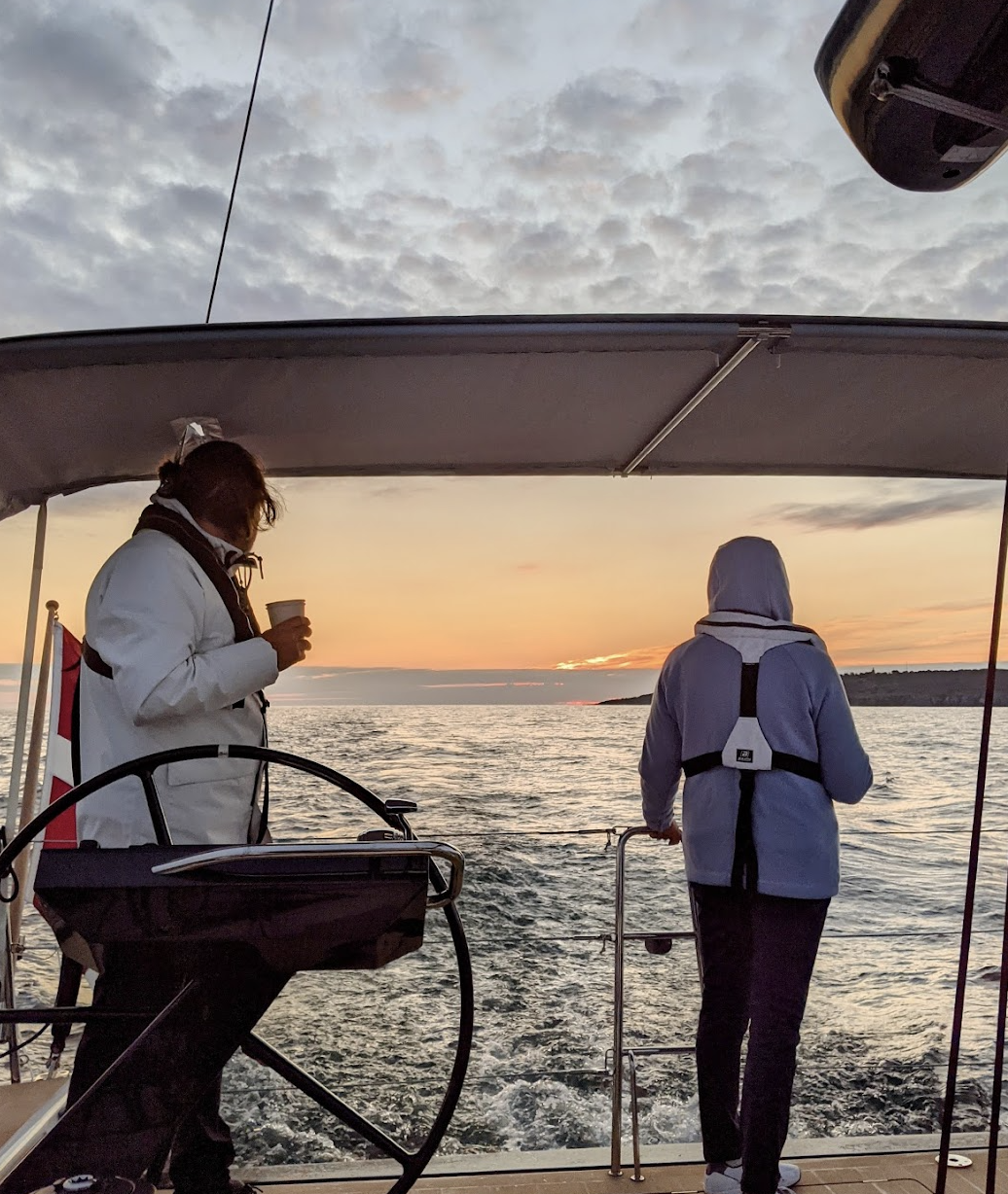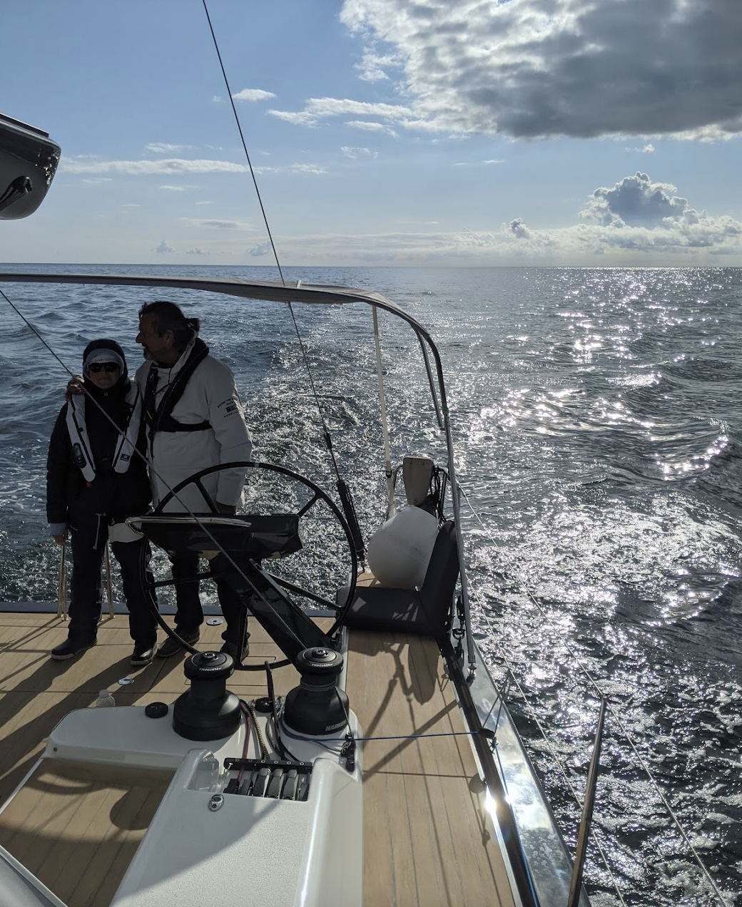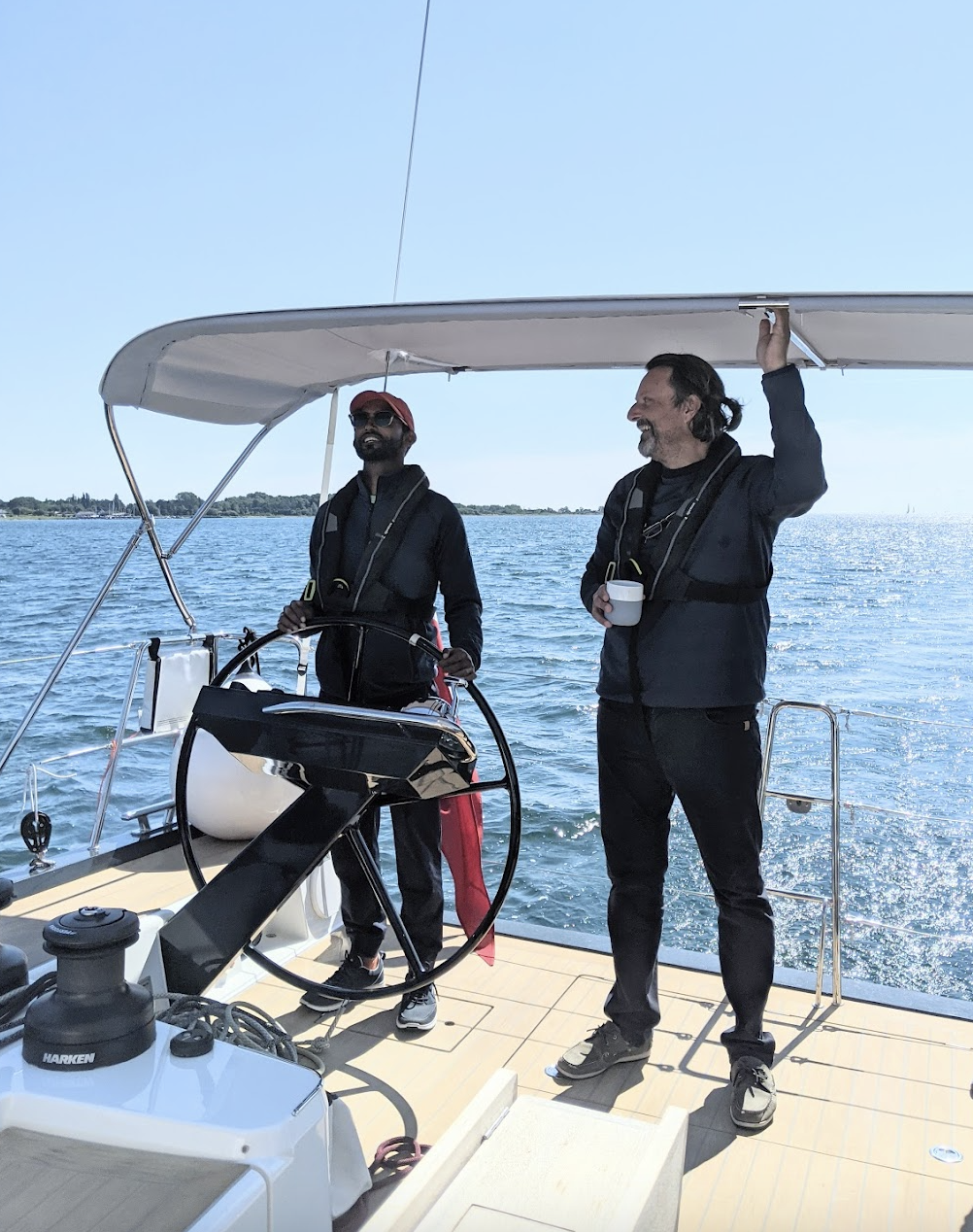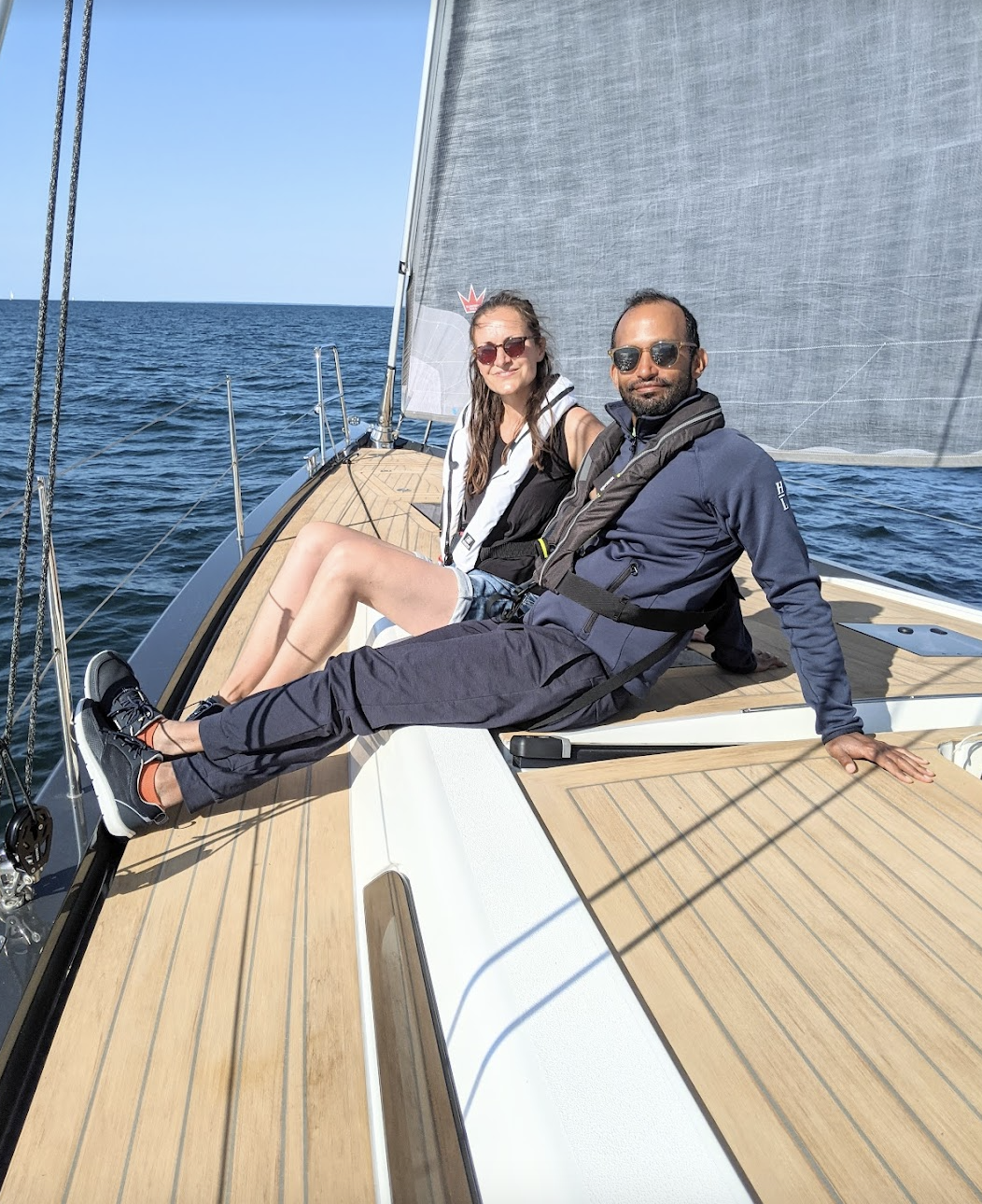 - On Sunday evening, Christian and Katrine arrived and settled in. C&K’s cabin is below the left side of the cockpit, Sanoop’s and mine is below the right side of the cockpit, while my parents’ is located towards the front of the boat. With 6 adults onboard, De Gæ Nok is at a comfortable-to-full capacity, and it suddenly becomes very clear how important it is to respect that every single item onboard is there for a reason, with a specific purpose and a designated home. It’s a spacious boat: but it’s still a boat. Every crew member has a responsibility towards each other to be on their best, most emphatic, most patient, and friendliest behaviour. Believe in each other’s best intentions. It’s a healthy exercise for any family. It felt cosy and exciting — and as a huge privilege in a time of much distance and challenge — to be together all of us. On that first night of the trip, we had a skipper meeting and dinner at a nearby restaurant.