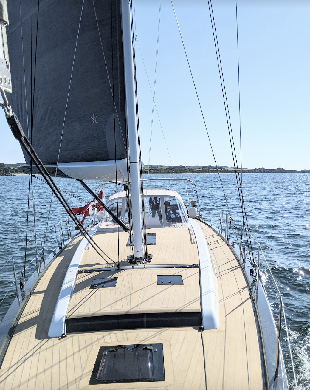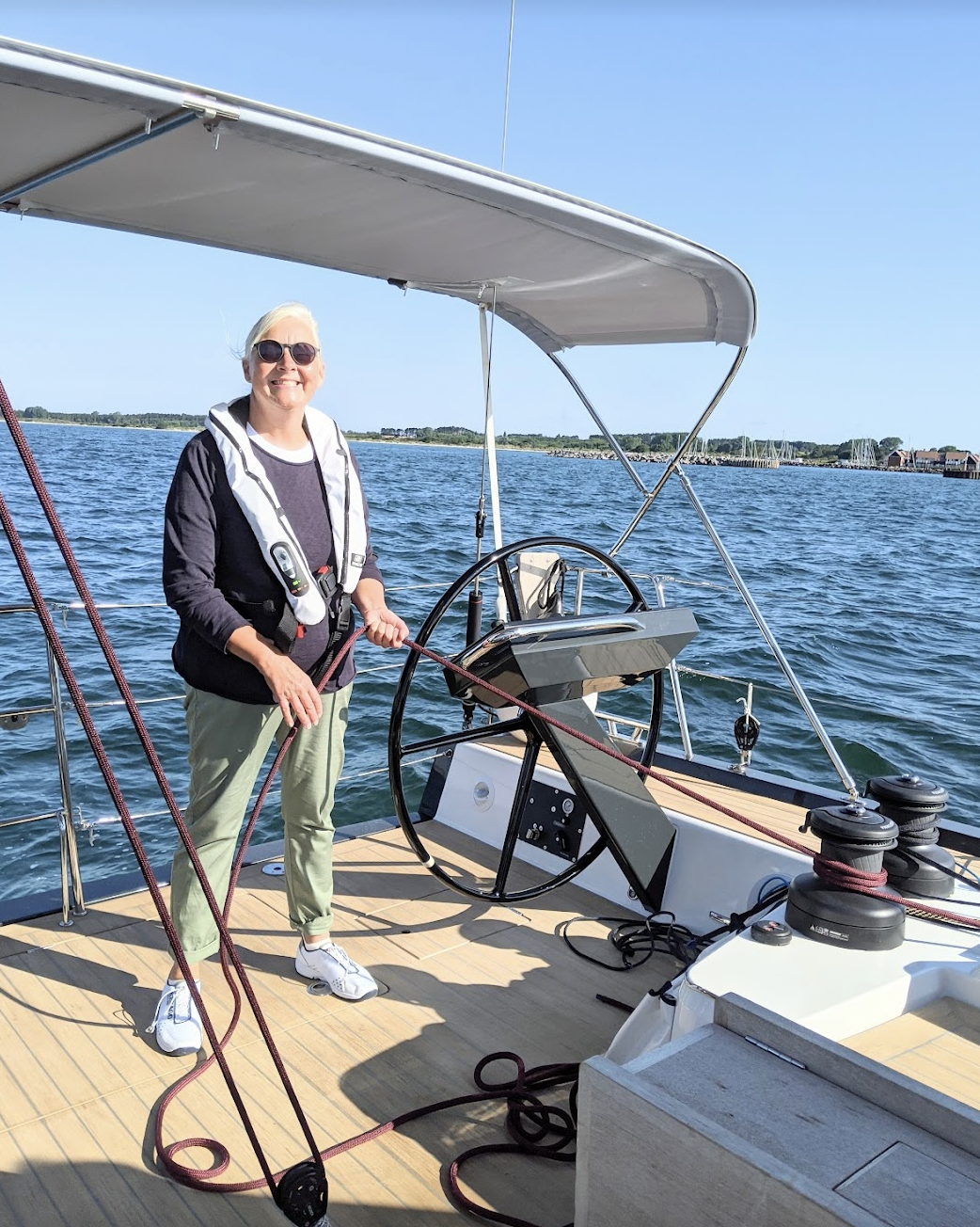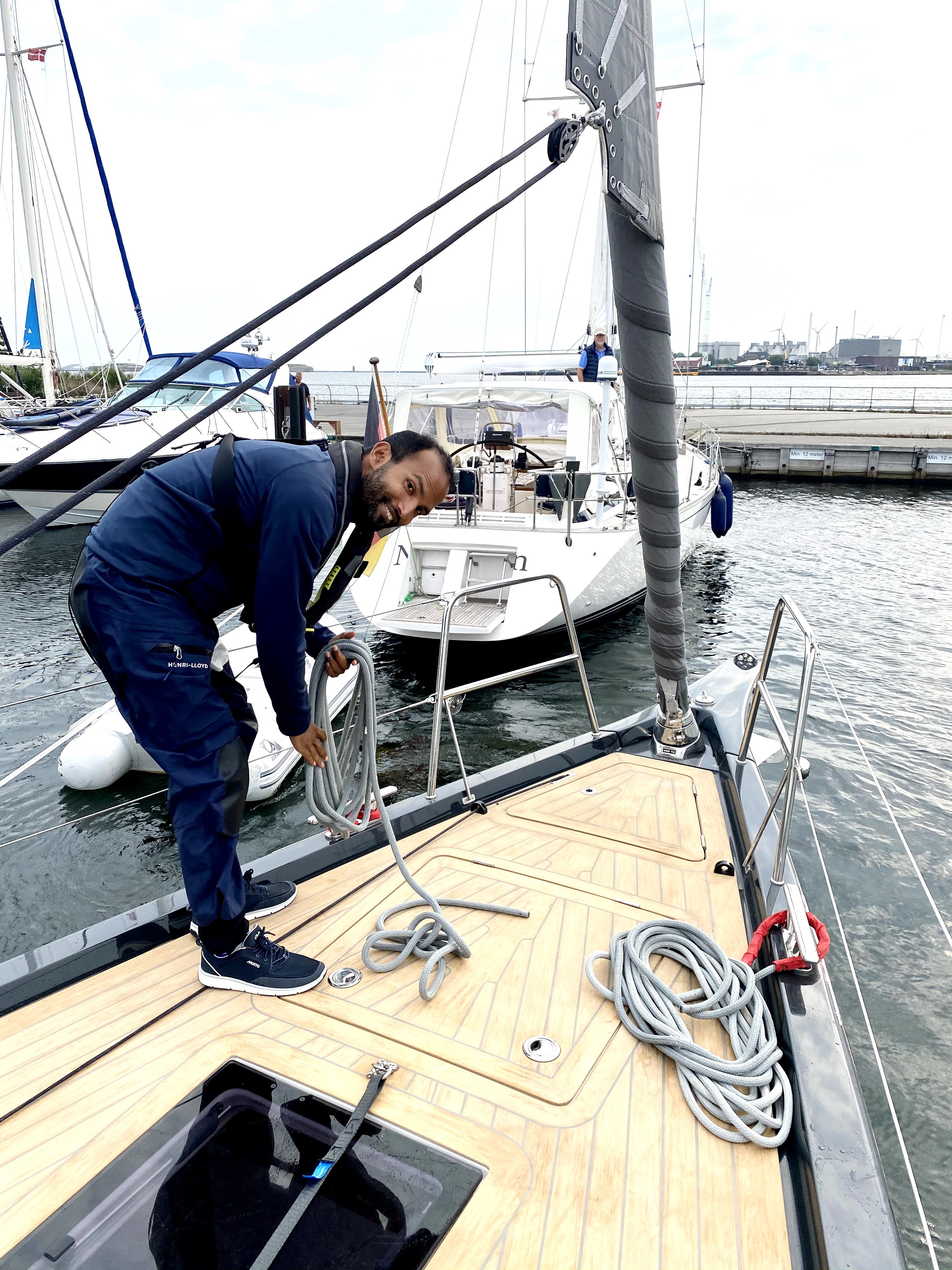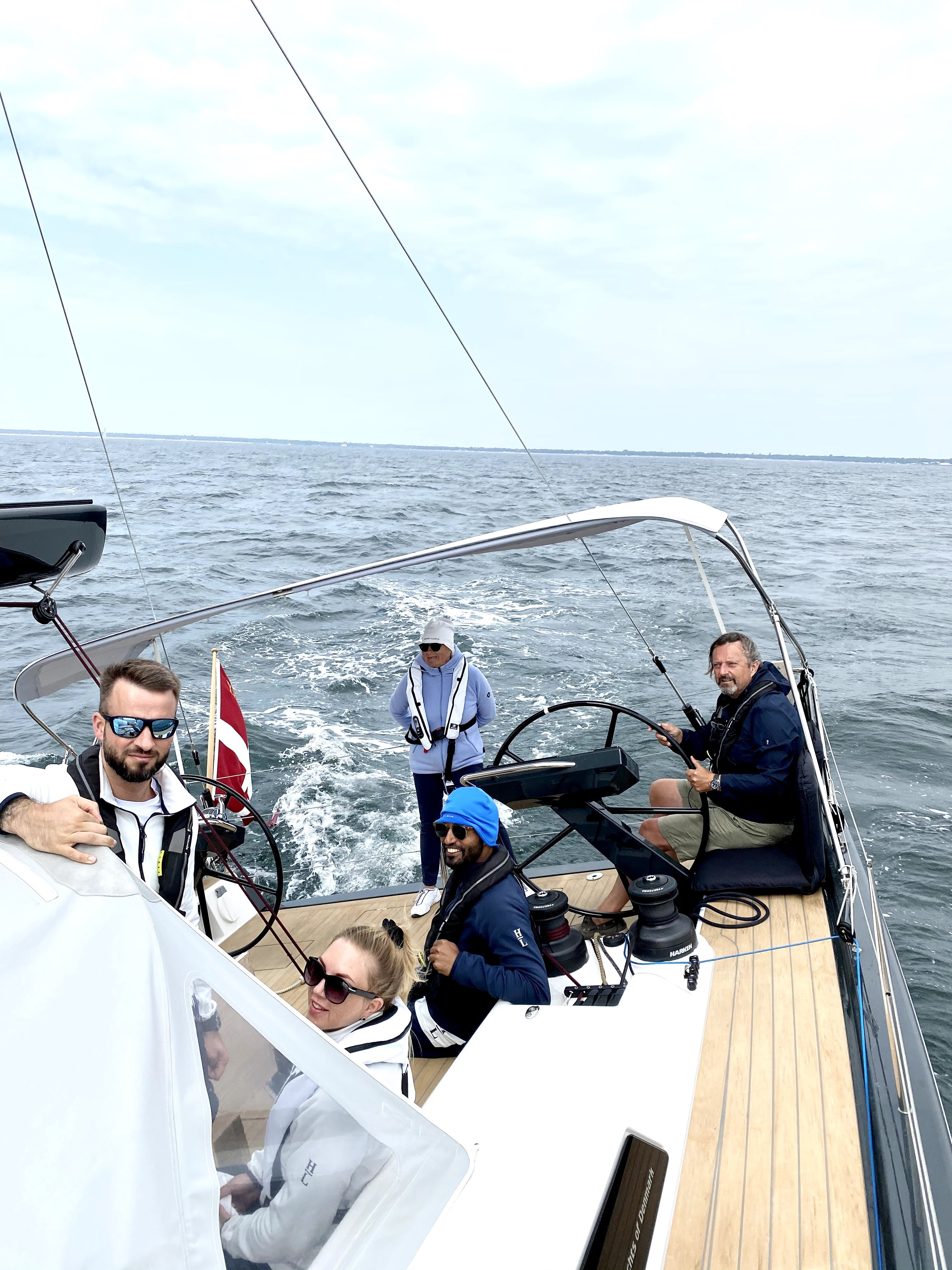 - After the long engine-powered sail from Bornholm, it was lovely to once again have sufficient wind to raise the sails on our way to Agersø. We had a gorgeous sail, and Skipper taught all crew members lots of new tricks. Sanoop had his steering debut!