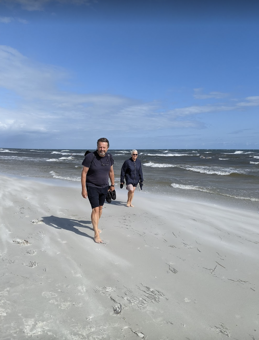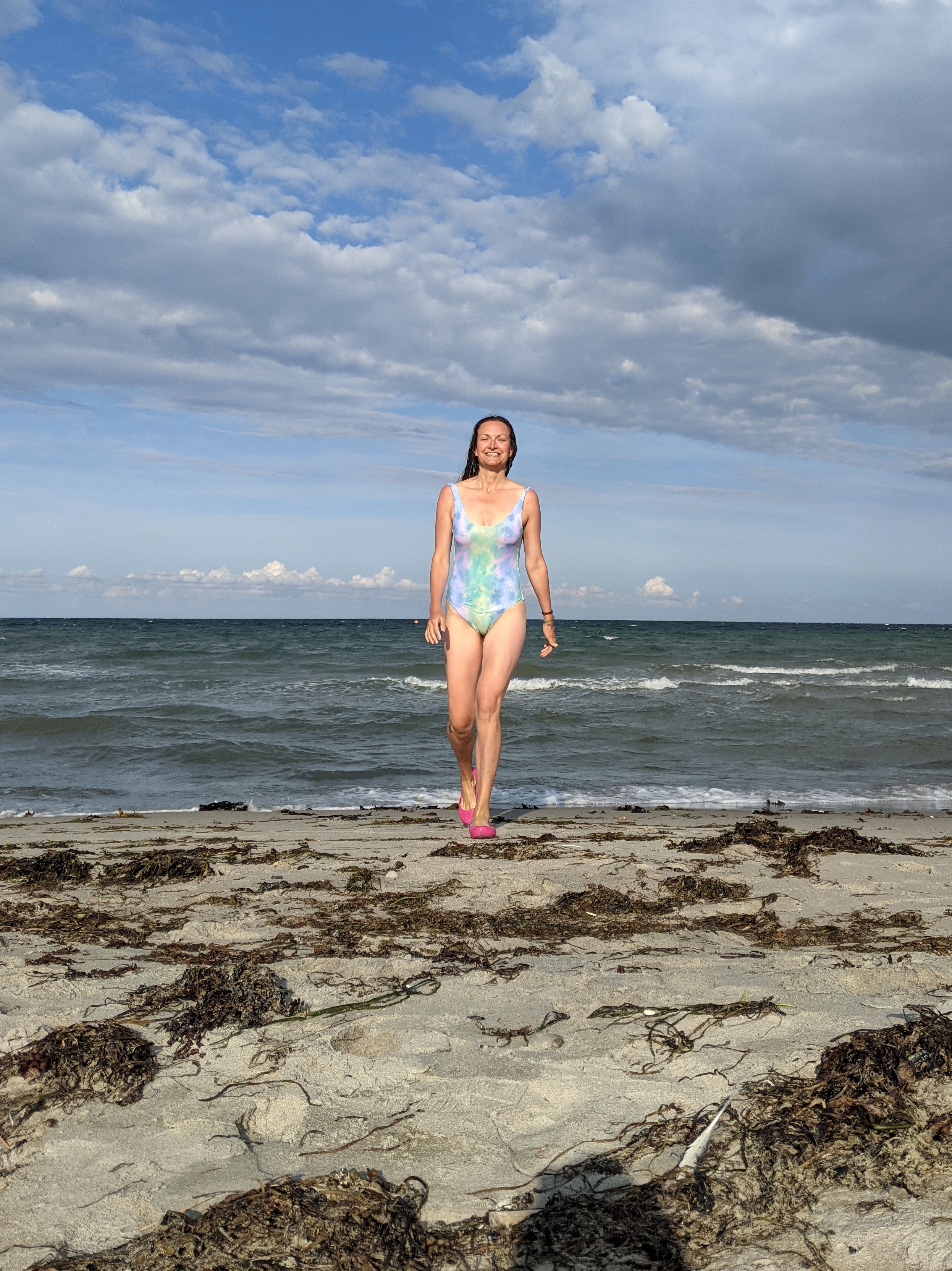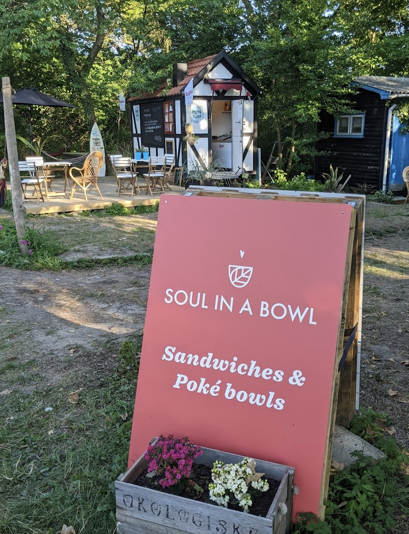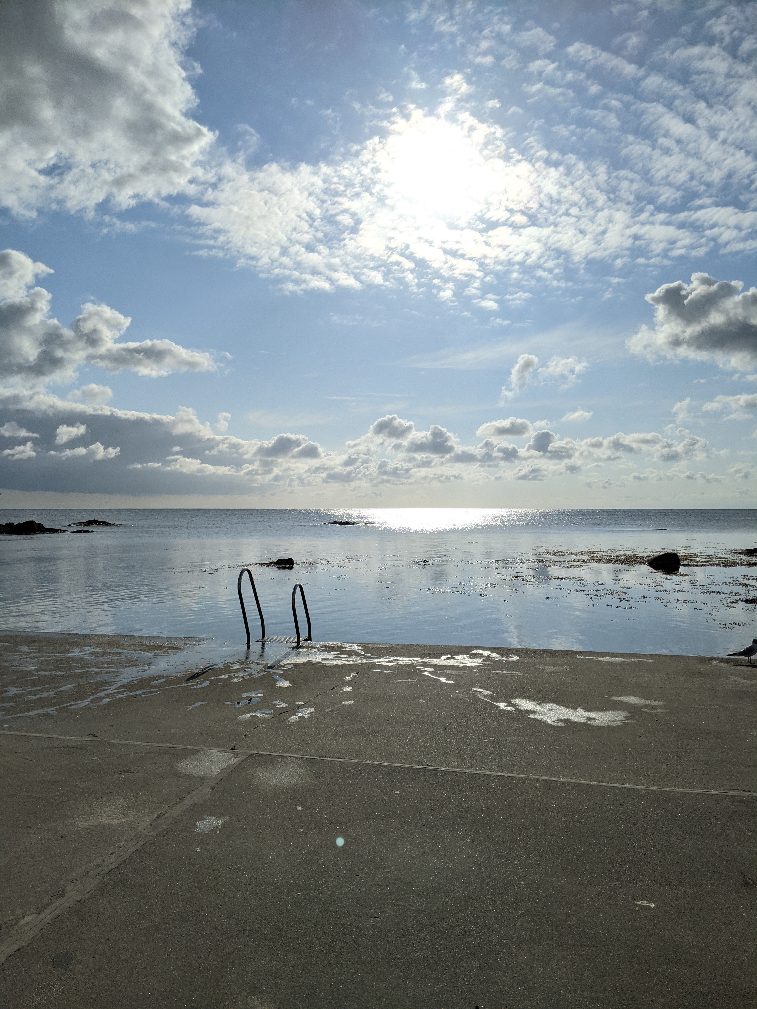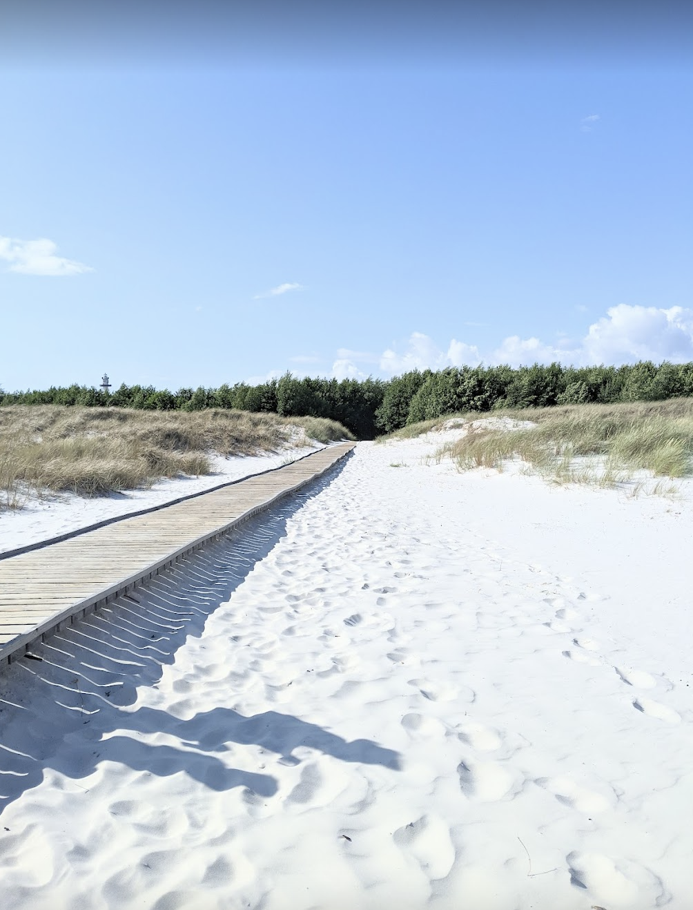 - Each morning, I’d walk to the beach along a sandy path winding its way between patches of heather and pieces of cliffs, lined, to the right, with quaint spa hotels and half-timbered summerhouses. The light was brightly yellow. The sea, on my left-hand side, was a clear, shiny blue mixed with a luminous green from thousands of slimy bands of seaweed. Kids were playing on the rocks and in the water. A local swim club met each morning, at 7:30am, right where the path and the rocks meet a small patch of white sand; the beach. I exchanged smiles and good morning greetings with everybody, and jumped into the cool, clean water. Swam around for 10-20 minutes. Got out and dried up in the cliffs. Walked back to the marina feeling fresh. Took a quick shower in the public shower facilities. Joined my family for tea, coffee, and breakfast onboard. I’d then sit in the cockpit for a bit, enjoying the sun and reading, do some yoga on the deck, and take my SUP out for a slow paddle back and forth in the marina. You’re not really supposed to do paddle in small marinas, but when I called the harbour master to check what he thought, he said that he couldn’t tell me not to, and that it would probably be all right as long as I took care and steered clear of moving boats.