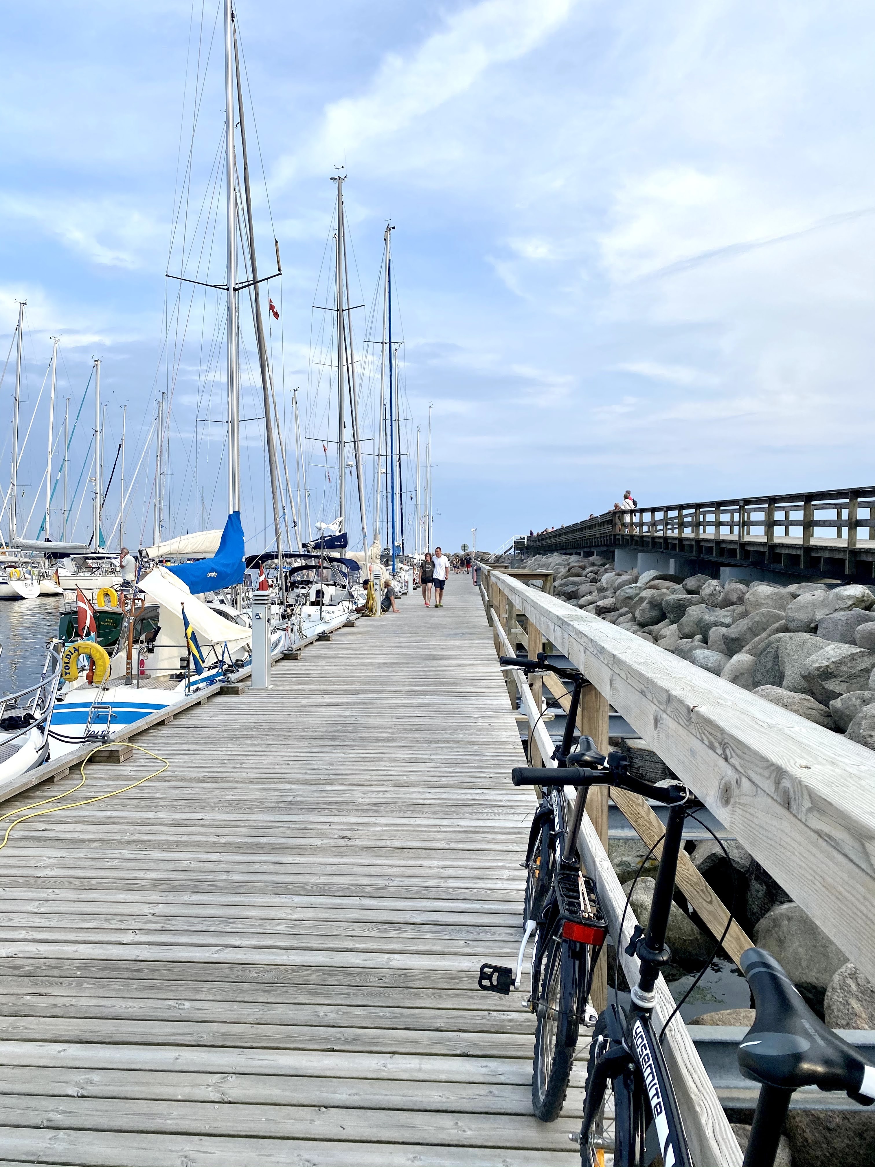 - On the final Bornholm day for now, I cycled alone to Vang, a small village situated at the bottom of the tall cliffs on northwestern side of the island. It felt very blissful. The ride in itself, through fields and forests, with no people in sight, just a few cows and birds to keep me company. And the destination was blissful, too: a charming place constituted by a neat marina and colourful houses stacked on steep hills. I sped down the hills towards the sea, feeling happy and free, trying not to think too much about what it’d be like to ride back up (I pushed my bike all the way up!). At the marina, I checked out a lovely art gallery and bought an apple juice from a nearby cafe, which I enjoyed sitting on one of the jetties with my legs hanging freely across the water. I was so tempted to jump in, but hadn’t bought a towel: the dip had to wait till I got back to Allinge.