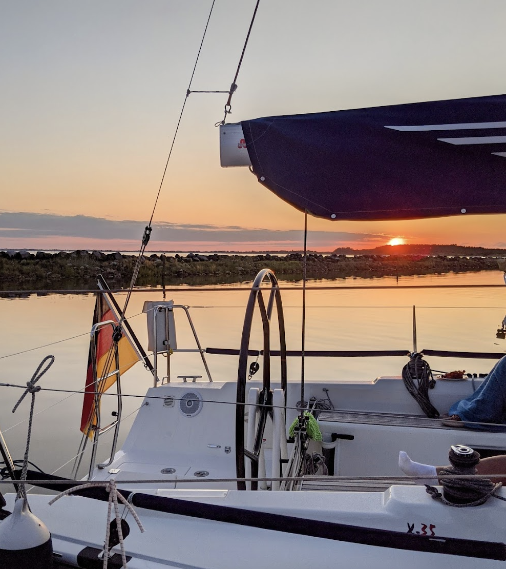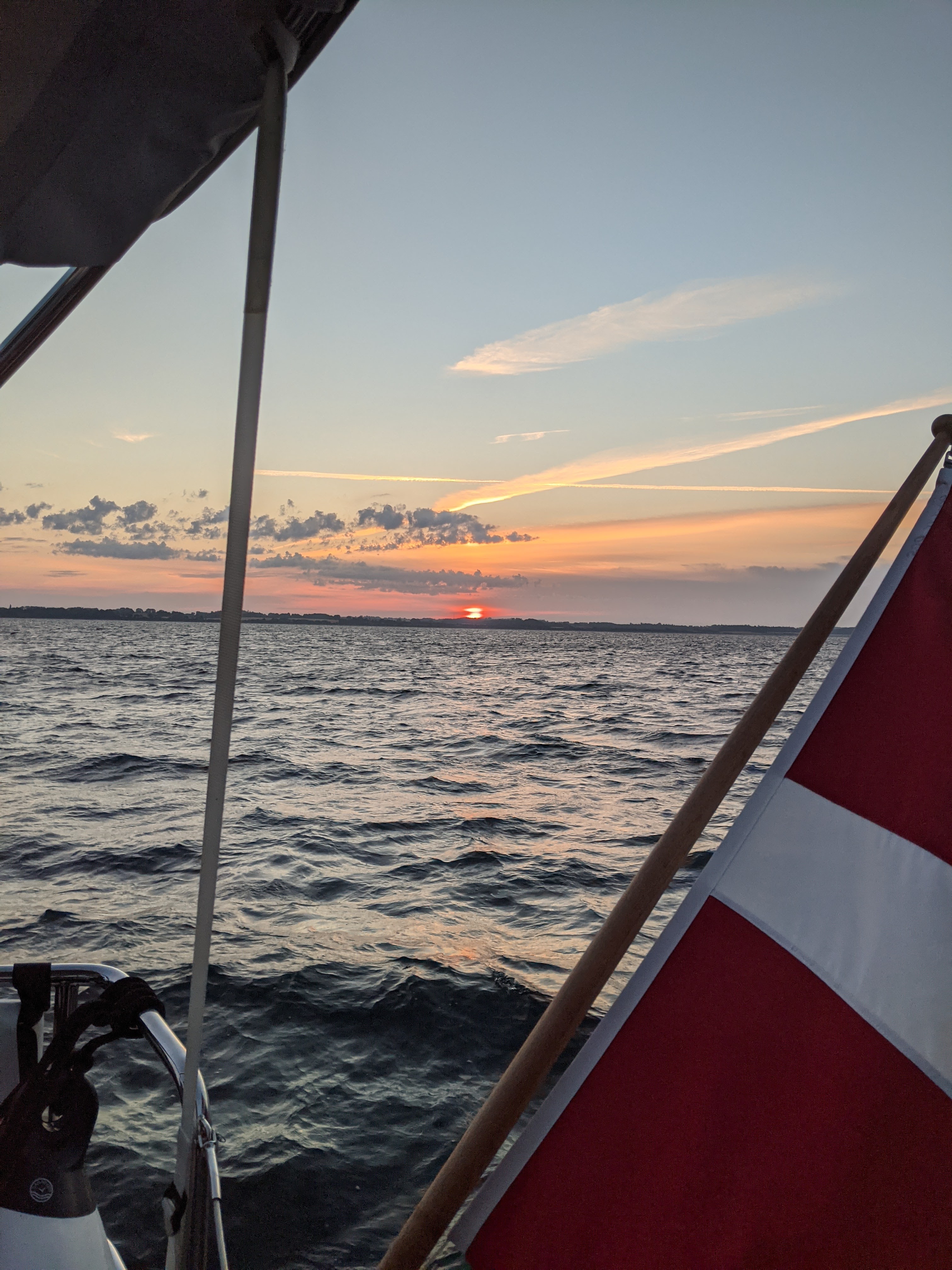 - In the evenings, we’d enjoy the sunset across the water, which was miraculously colourful even on our, the eastern side of the island. We’d then get dinner: homemade tapas, barbecue, and Thai takeaway in the cockpit; Sommer, Grønbechs Hotel, and a few other local restaurants. Afterwards, we’d play card and read in the cockpit. Head over to Fabers for drinks and live music. Stroll along the pier back to the boat for a cosy night of being rocked to sleep by softly rolling waves.