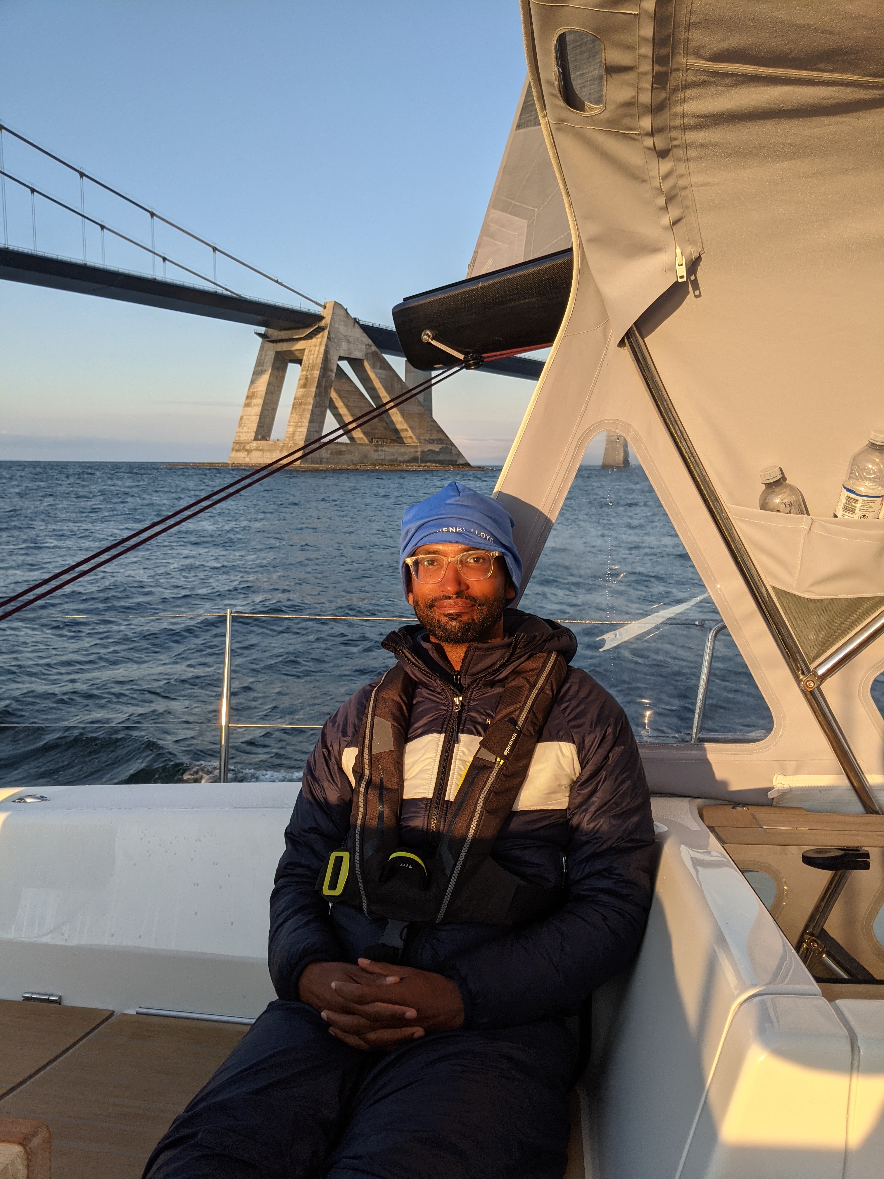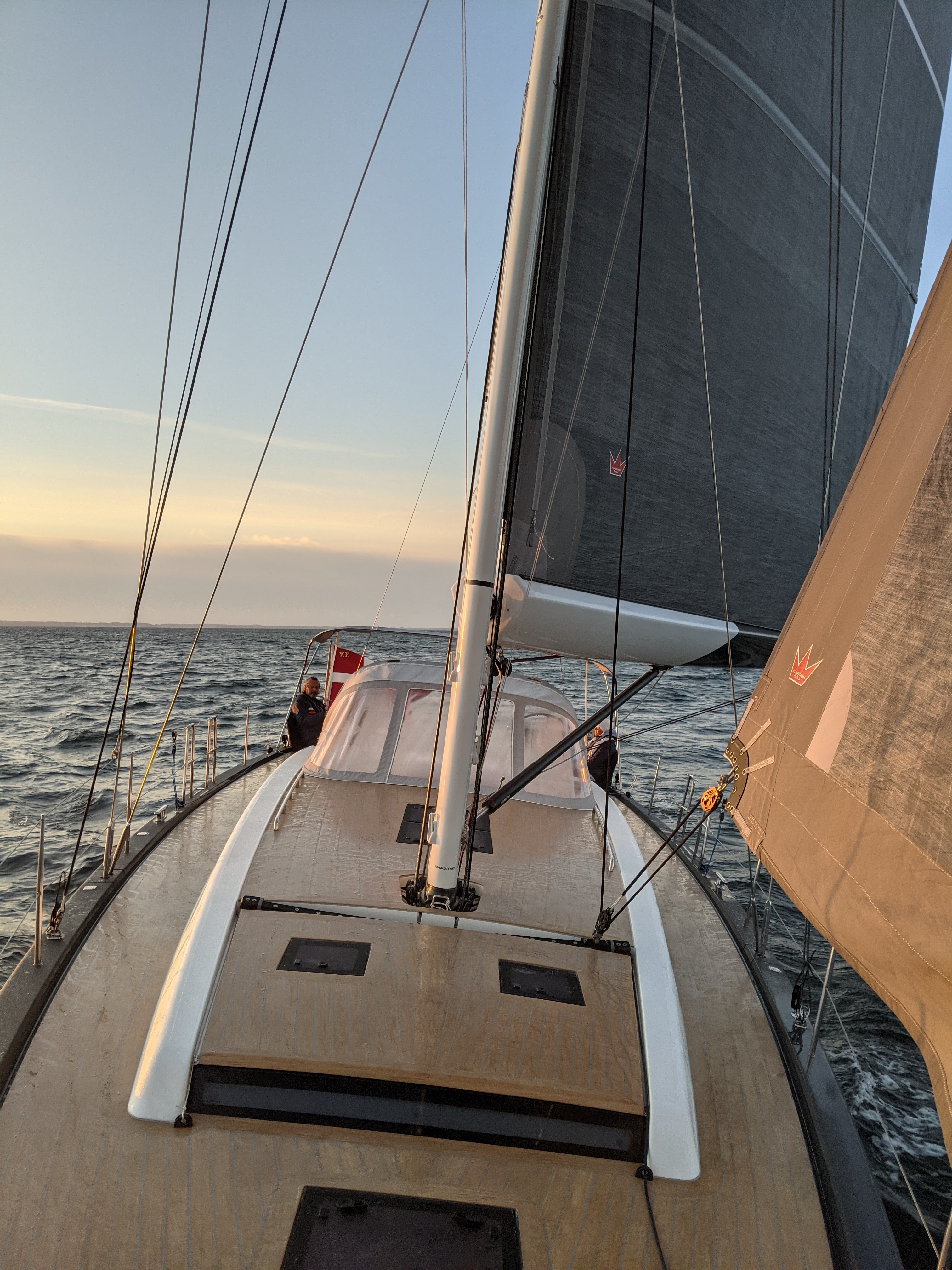 - 5am is when we embarked on the, for Sanoop and me, last leg of this journey. The early sunrise sail was just as magical as the previous once we’d experienced. And this one was full of wonderful wind: the sail up through Store Bælt and under the bridge was a one to remember.