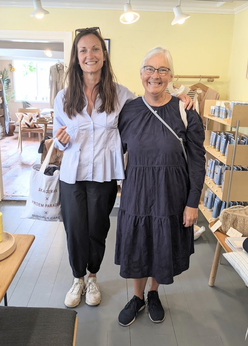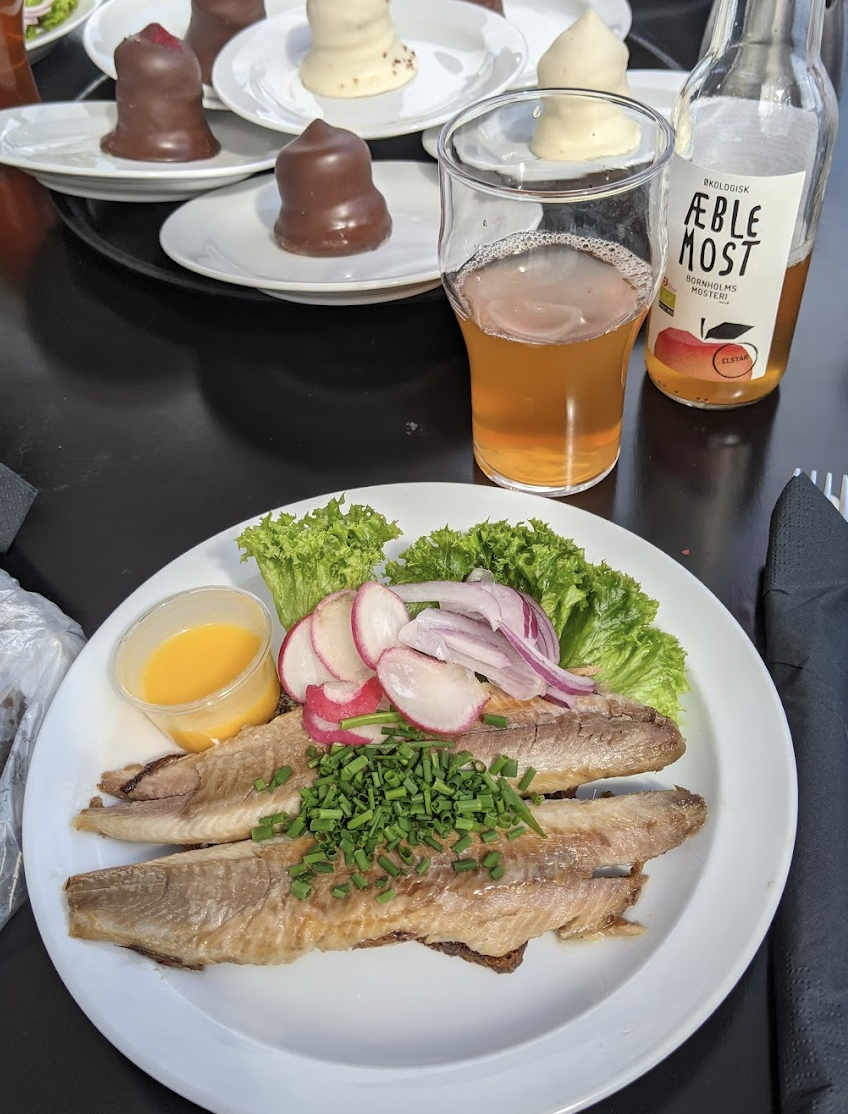 - Bike ride to Gudhjem: The following day, we rented electric bikes and cycled south along the scenic coast to Gudhjem, where we visited the stunning local art museum, ate the local specialty, Sol over Gudhjem, an open rye sandwich with smoked herring, chives, and a raw egg yolk (the sun) on top, and went shopping: soo many lovely, sustainability-focused Danish clothing designers have a pop-up in Bornholm in the summer, e.g. Proem Parades.