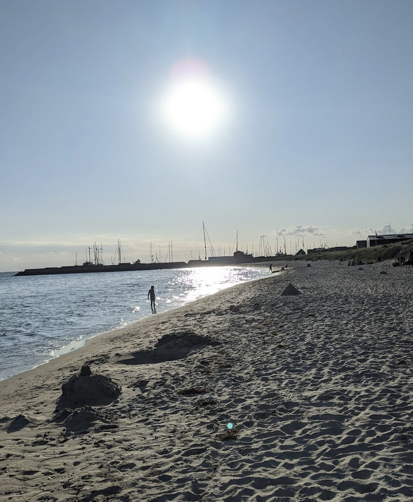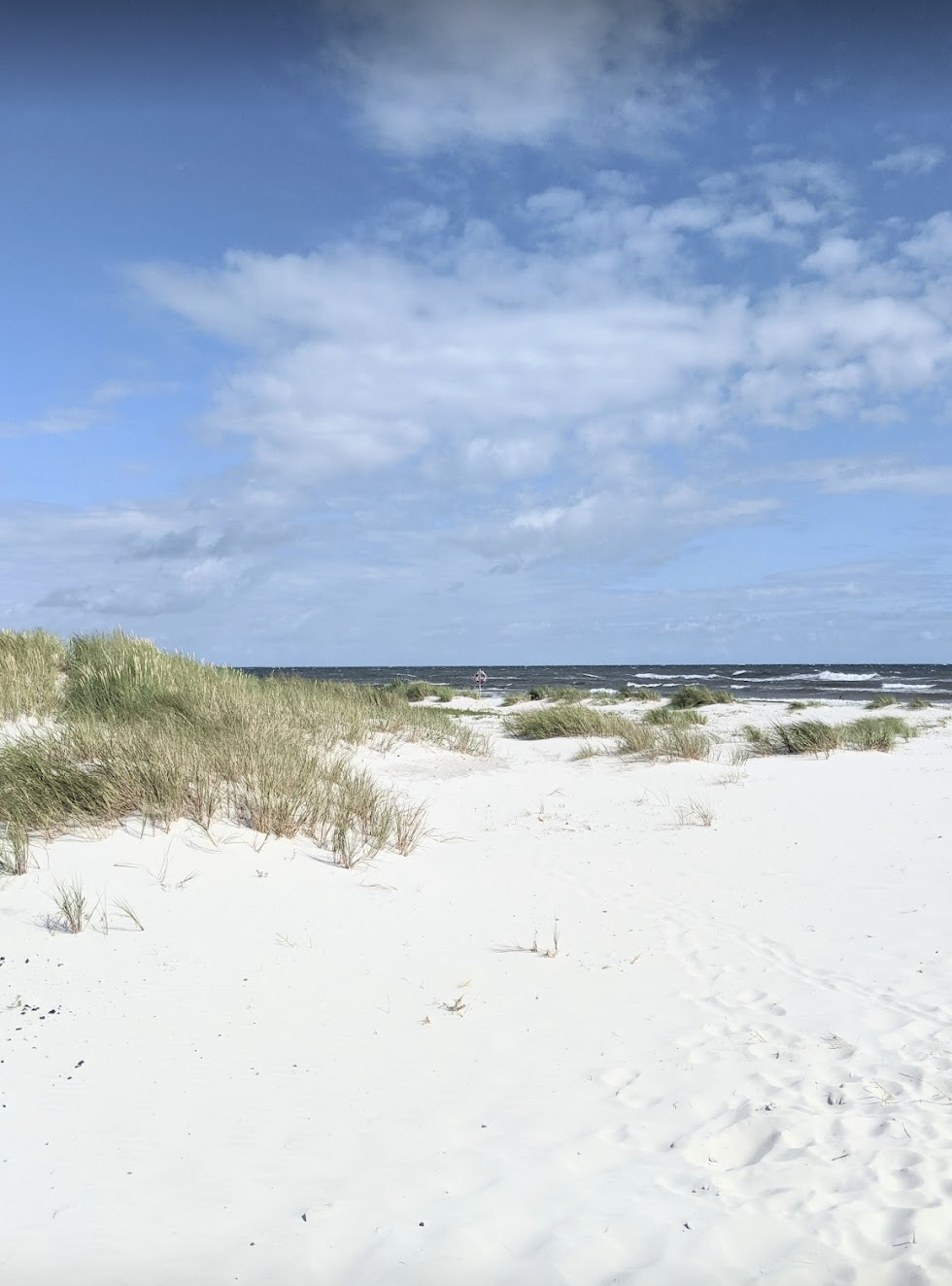 - The next day, we were back on the bus, travelling all the way down to the southernmost tip of the island to check out the most beautiful beach in the world, Dueodde Strand: incredibly white, incredibly wide, lined with tall, soft sand dunes. The bus driver’s philosophy, which we interpreted as general island philosophy, was: it’s better to be 5 minutes late, because then you know that everybody’s onboard. He told us everything there is to know about the island while driving slowly along, swinging by all of the tiniest of villages, stopping wherever people wanted to get off. It was suuuper windy on the beach: we had a magical, dramatic walk and swim.