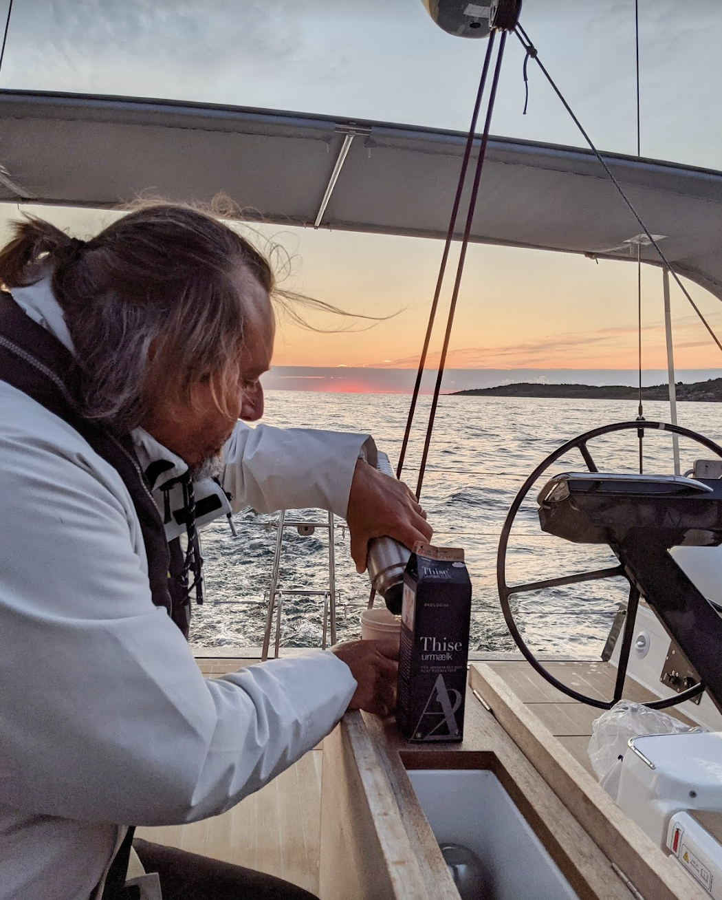 - Before setting sails early the next morning, we went for a morning walk on the beach, showered, and enjoyed the plantation figs on our breakfast yoghurt. Sanoop went up to the street food market to buy cortados for everyone from one of the vendors, a guy who works as a scientist in Copenhagen most of the year and runs his coffee stall down here for a few weeks each summer. Back onboard around 8am, the four of us got ourselves and the boat ready for the next leg of the journey.