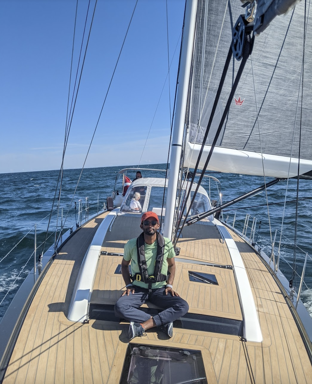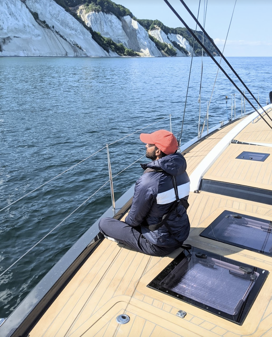 For De Gæ Nok’s 2021 summer excursion, we revisited Bornholm for the first time since those trips. Thus, I now had my home with me, nothing to feel sick about, and capacity to soak in all of the magic impressions that this incredible island offers. My parents took off from Juelsminde mid-July, sailing via Zealand’s north coast to Copenhagen. On 25 July, my brother, Christian, his girlfriend, Katrine, Sanoop, and I boarded. Early on Monday the 26th, we crossed through Øresund and sailed along the southern coast of Sweden to Ystad, where we moored for the night. Next day, we got up at 4am for the most breathtakingly beautiful, serene sunrise sail to Allinge in Bornholm. As it had been a while since 4 of us were last there and 2 of us had never visited before, we gave ourselves 8 days to explore the island before we embarked on the remainder of the trip — to Møn, Agersø, and Kerteminde. Christian and Katrine left Bornholm on a ferry after a week, while Sanoop and I disembarked in Kerteminde, from where we went to Copenhagen while my parent sailed the boat back to Juelsminde.