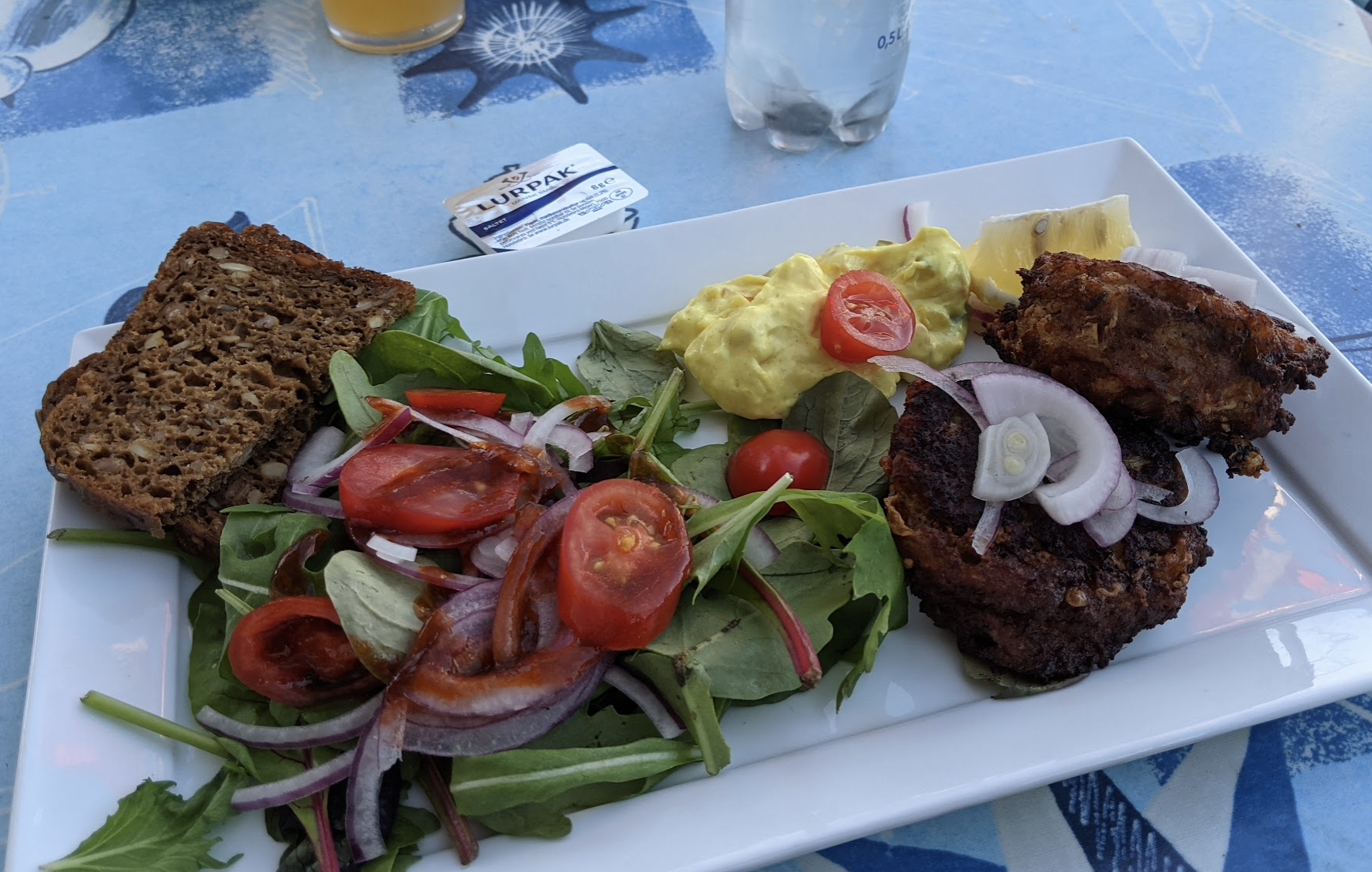 - Arriving late into Agersø Marina, tired and starving from all of the fresh salty air, we luckily didn’t have to worry about finding food. The island is small and doesn’t boast a lot of stores and restaurants, so our friend, who has a holiday home on the island (sadly, she wasn’t around at this time!), had contacted the one seafood bistro on the harbour and asked them to stay open late enough to greet us. And greet us the friendly bistro folks did! With the best fish cakes we’d ever tasted! In fact, those treats were so good we had to order another round!