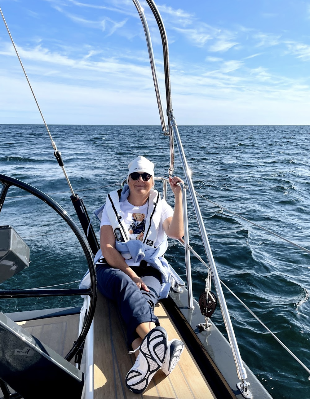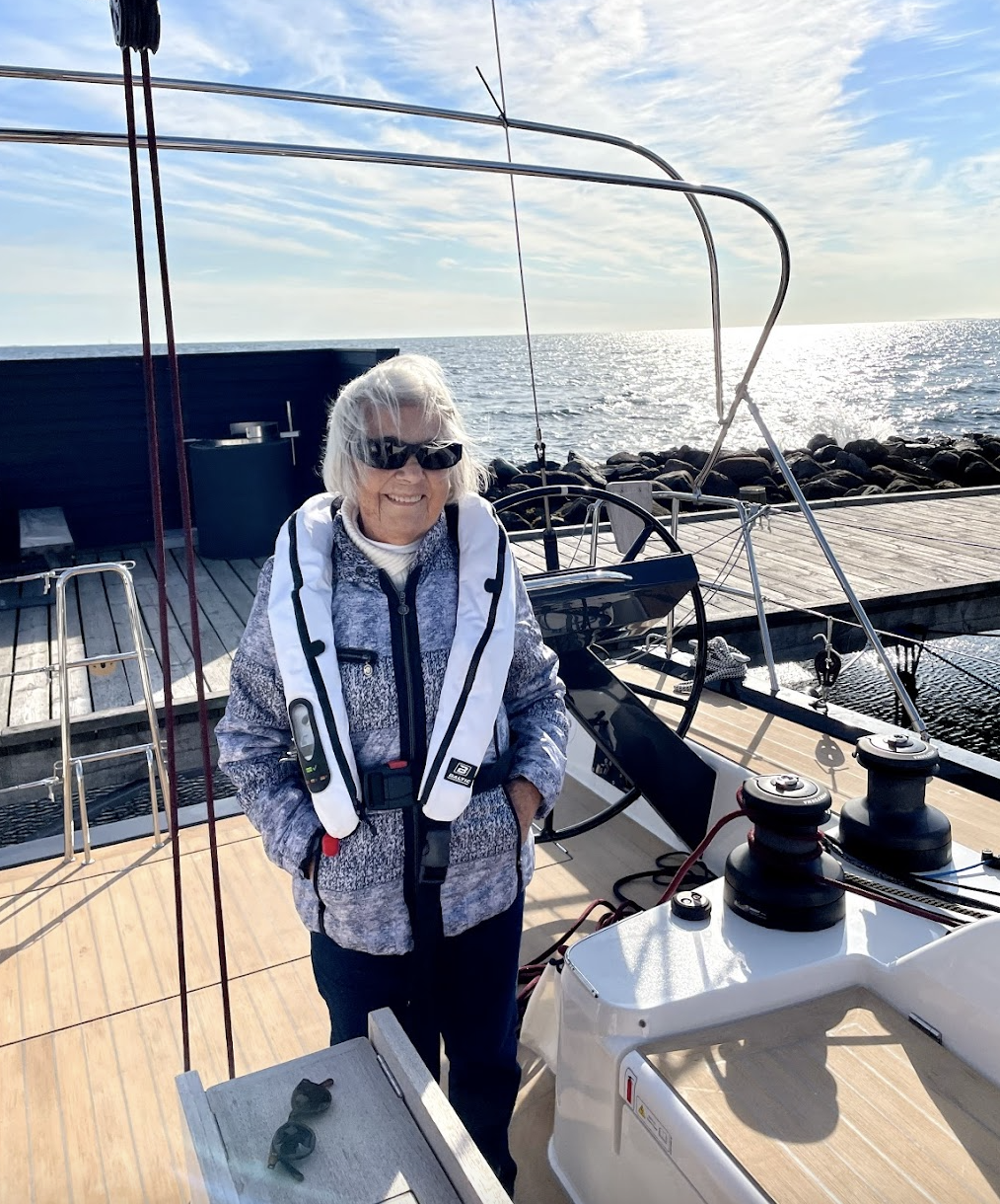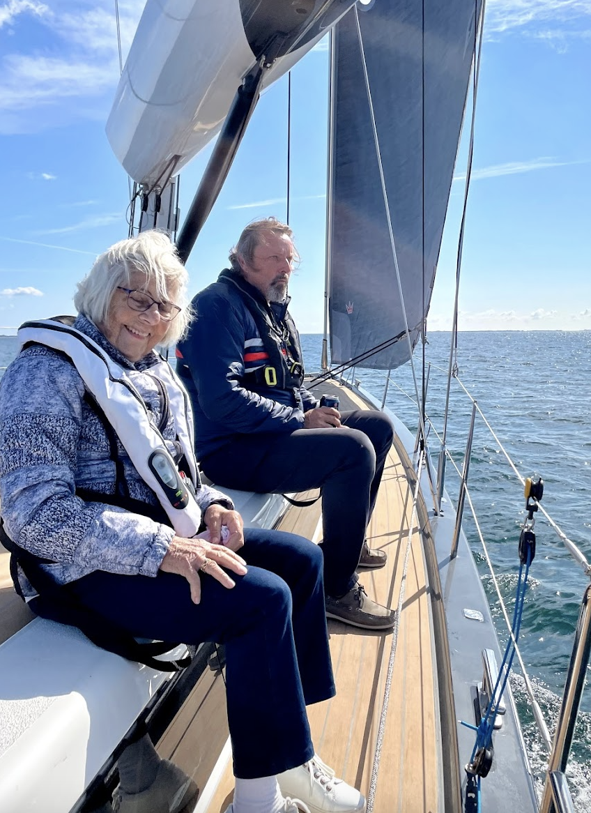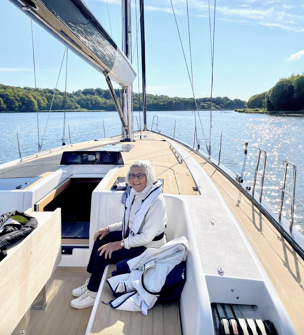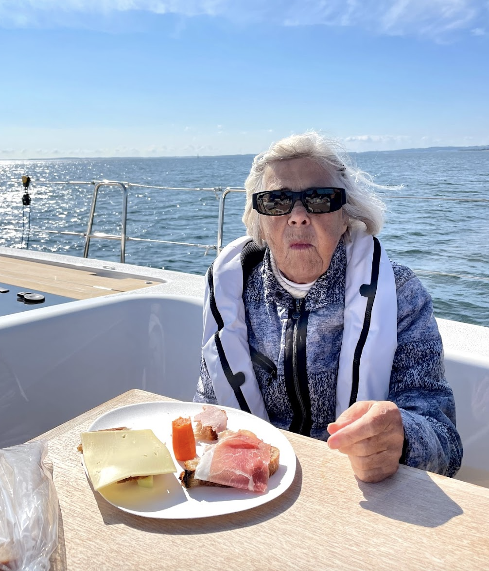 She once slipped a jellyfish down the back of my swimsuit when we were out swimming, maybe 25 years ago, maybe here in Juelsminde. It was a prank. A game. We played many games. In the water, around Denmark, abroad. She called me her sunshine girl, Camilla Dingsbums (German for ‘thingy’), or (as the only one) Camilla Victoria. This past summer, she was fit: sailing with us, working at a charity shop, going for walks and workouts with neighbours, hosting and visiting friends, driving her car so proudly, bragging about people thinking she was 63 not 93, dressing up in neat outfits, overcoming minor health setbacks, reminding us that ‘ill weeds grow apace’ — in all respects making the most of life, just as she always has been. She told me, ‘there are many doors in life, where we have to knock and ask kindly to be let in, because if we don’t, we’ll be left in the dark. People do reach out their hands, and I receive them openly. I too reach out my hand — to touch, help, and meet others. We must make an effort, step forward, and be curious.’
