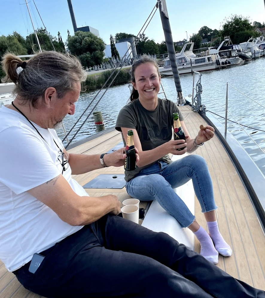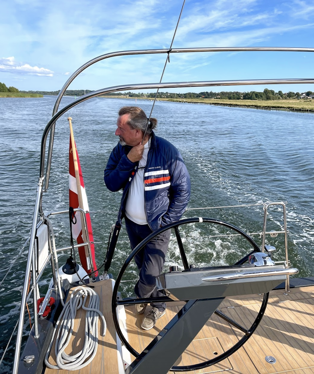 Meandering through the long, narrow Haderslev Fjord, I savoured every moment of the gorgeous final hours of the ride in the clear, blue waves framed by rolling fields and meadows and the prettiest farm houses. When we finally got to the home of the X-Yachts and moored De Gæ Nok amongst all of her elegant smaller and bigger younger and older sisters, we hung around for a bit to drank champagne and thank the boat and each other for a good season. Bedste was a bit tired after the 7 hours at sea, so after tidying up a bit, we drove home and saved cleaning the boat for the next day.