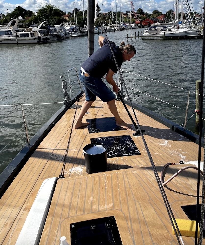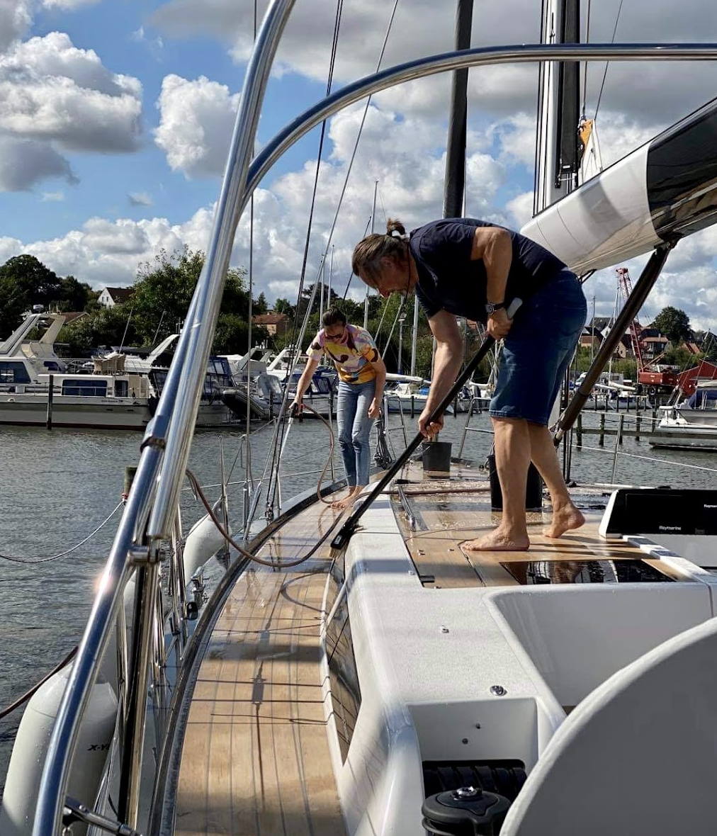 On Sunday, my parents and I returned to rinse and scrub down every corner of the deck, handrails, and cockpit thoroughly, clean the inside of the boat carefully, and empty out everything that makes the boat a comfortable home. We folded all the sails and loaded them into our cars along with all of the cushions, kitchen equipment, and sailing clothes. All of this gear will spend the winter in the dry and warm attic in Juelsminde.